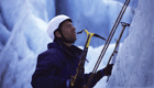Du får utdelt to isøkser, hjelm og stegjern. Ved hjelp